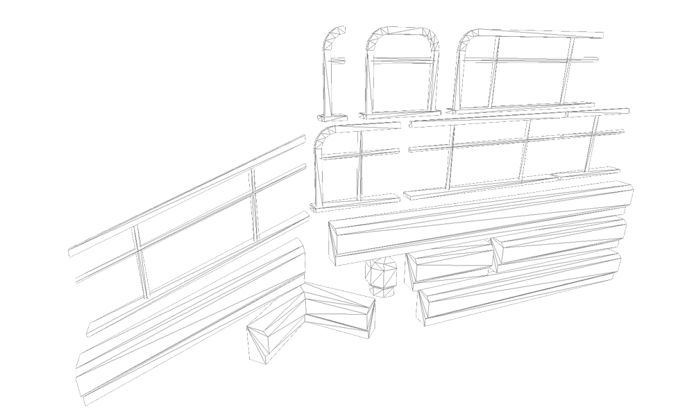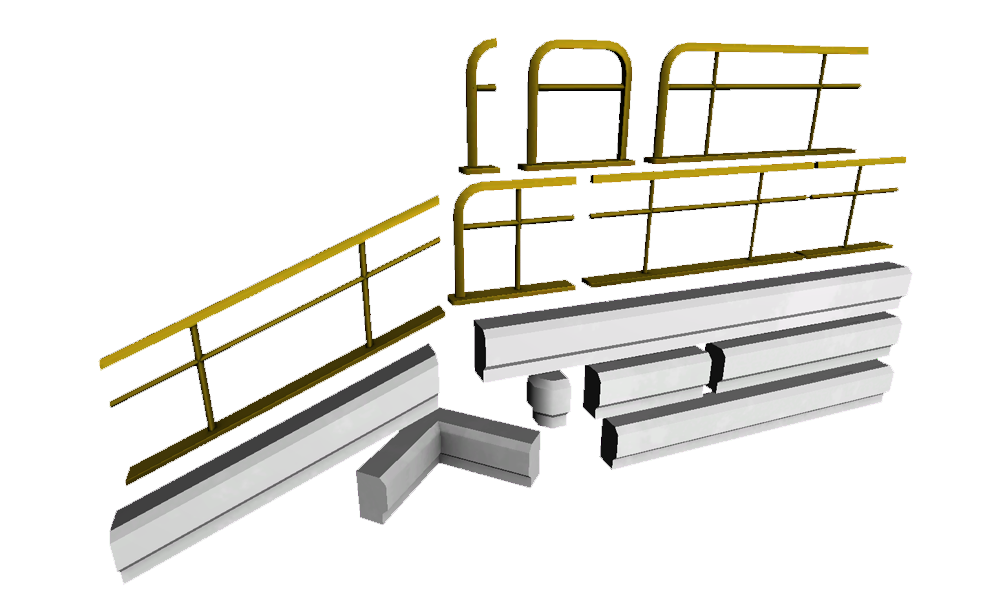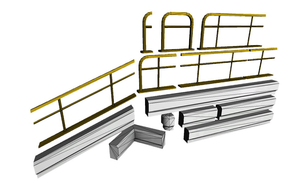 Models used to construct trim and railing for Oil Rig Hideout level.